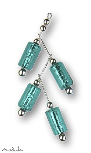 Modula® Anhänger -326- Zweig türkis (4 Glaszylinder), Metall versilbert, H: 7,5 cm, Art.-Nr.: 2132604