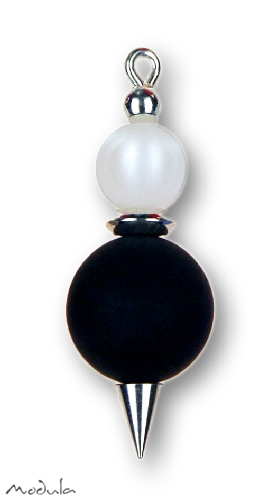 Modula® Anhänger -336- weiß-schwarz (2 Polarisperlen matt), Metall versilbert, H: 4,0 cm, Art.-Nr.: 2133663