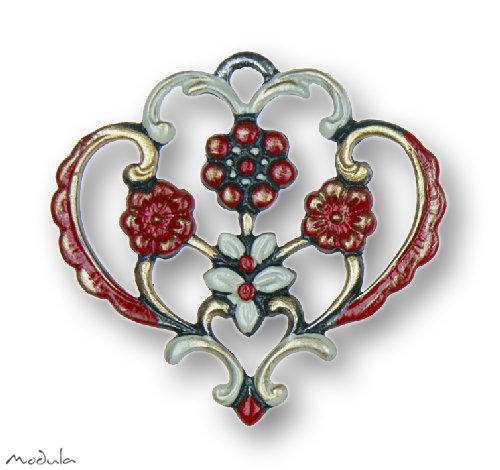 Modula® Anhänger Herz mit vier Blumen rot, H: 4,5 cm, Art.-Nr.: 2110103