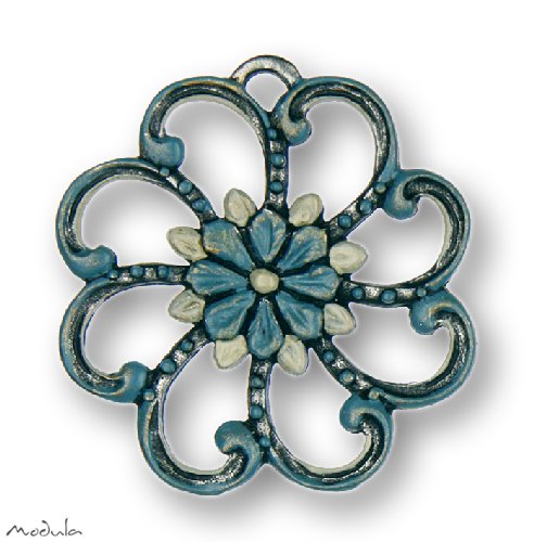Modula® Anhänger rund mit Blume blau, H: 4,5 cm, Art.-Nr.: 2111404