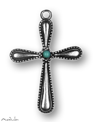 Modula® Anhänger Minikreuz antik/Stein grün, H: 4,5 cm, Art.-Nr.: 2120380