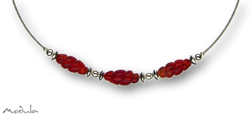 Modula® Collier -5107- rot (3 Glasspindeln), L: 45 cm Schmuckseil Edelstahl farblos beschichtet, Art.-Nr.: 51074507