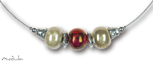 Modula® Collier -5101- creme-rot (3 Keramikperlen), L: 50 cm Schmuckseil Edelstahl farblos beschichtet, Art.-Nr.: 51015004