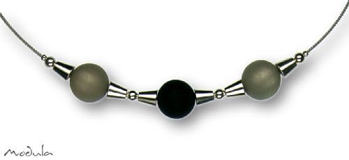Modula® Collier -5111- grau-schwarz (3 Polarisperlen matt), L: 42 cm Schmuckseil Edelstahl farblos beschichtet, Art.-Nr.: 51114272