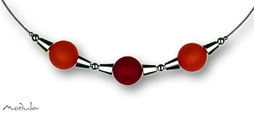 Modula® Collier -5111- orange-rot (3 Polarisperlen matt), L: 40 cm Schmuckseil Edelstahl farblos beschichtet, Art.-Nr.: 51114066