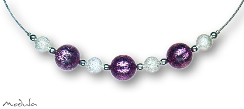 Modula® Collier -5112- pink (3 Polarisperlen flitter, Star Dust), L: 40 cm Schmuckseil Edelstahl farblos beschichtet, Art.-Nr.: 51124035