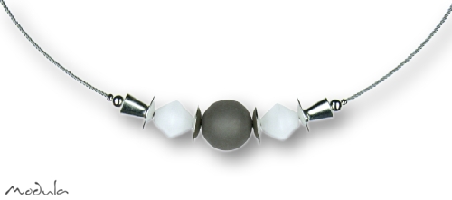 Modula® Collier -5113- weiß-grau (2 Polaris-Doppelkegel, 1 Polarisperle matt), L: 42 cm Schmuckseil Edelstahl farblos beschichtet, Art.-Nr.: 51134265