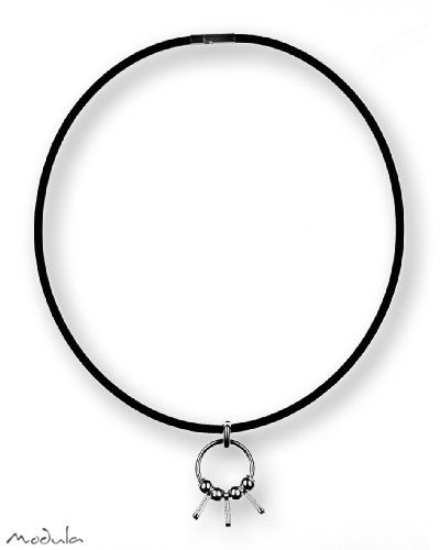 Modula® Halsreif Kautschukschnur -210- L: 42 cm schwarz 3,0 mm, Bajonettverschluss, Anhängerring, 3 Clipkarabiner, Art.-Nr.: 2021042