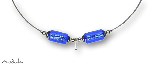 Modula® Halsreif Schmuckseil -105- dunkelblau (2 Glaszylinder), L: 40 cm Edelstahl 1,4 mm farblos beschichtet, Steckverschluss, Clipkarabiner, Art.-Nr.: 201054006