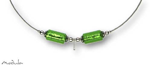 Modula® Halsreif Schmuckseil -105- grün (2 Glaszylinder), L: 40 cm Edelstahl 1,4 mm farblos beschichtet, Steckverschluss, Clipkarabiner, Art.-Nr.: 201054003