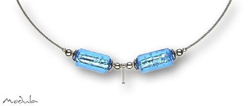 Modula® Halsreif Schmuckseil -105- hellblau (2 Glaszylinder), L: 40 cm Edelstahl 1,4 mm farblos beschichtet, Steckverschluss, Clipkarabiner, Art.-Nr.: 201054005