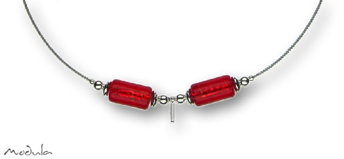 Modula® Halsreif Schmuckseil -105- rot (2 Glaszylinder), L: 40 cm Edelstahl 1,4 mm farblos beschichtet, Steckverschluss, Clipkarabiner, Art.-Nr.: 201054007
