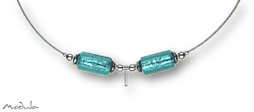 Modula® Halsreif Schmuckseil -105- türkis (2 Glaszylinder), L: 40 cm Edelstahl 1,4 mm farblos beschichtet, Steckverschluss, Clipkarabiner, Art.-Nr.: 201054004