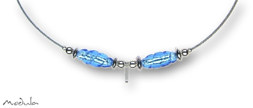 Modula® Halsreif Schmuckseil -106- hellblau (2 Glasspindeln), L: 45 cm Edelstahl 1,4 mm farblos beschichtet, Steckverschluss, Clipkarabiner, Art.-Nr.: 201064505