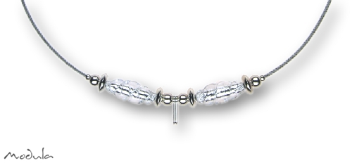 Modula® Halsreif Schmuckseil -106- kristall (2 Glasspindeln), L: 42 cm Edelstahl 1,4 mm farblos beschichtet, Steckverschluss, Clipkarabiner, Art.-Nr.: 201064201