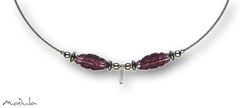 Modula® Halsreif Schmuckseil -106- viola (2 Glasspindeln), L: 45 cm Edelstahl 1,4 mm farblos beschichtet, Steckverschluss, Clipkarabiner, Art.-Nr.: 201064508