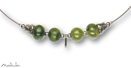 Modula® Halsreif Schmuckseil -109- grün (4 Keramikperlen), L: 45 cm Edelstahl 1,4 mm farblos beschichtet, Steckverschluss, Clipkarabiner, Art.-Nr.: 201094501