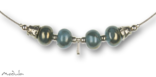 Modula® Halsreif Schmuckseil -109- türkis (4 Keramikperlen), L: 40 cm Edelstahl 1,4 mm farblos beschichtet, Steckverschluss, Clipkarabiner, Art.-Nr.: 201094003