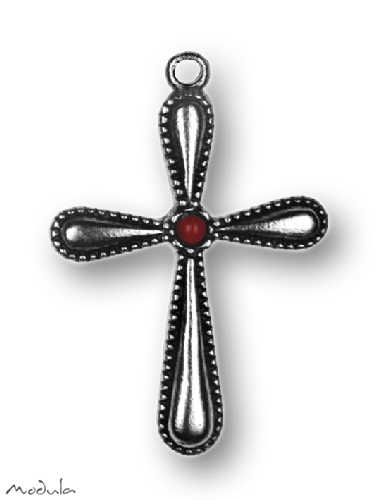 Modula® Anhänger Minikreuz antik/Stein rot, H: 4,5 cm, Art.-Nr.: 2120381
