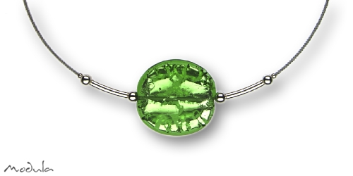 Modula® Collier -5109- grün (Glasperle flach groß), L: 40 cm Schmuckseil Edelstahl farblos beschichtet, Art.-Nr.: 51094003