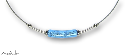 Modula® Collier -5110- hellblau (Glaszylinder gebogen), L: 42 cm Schmuckseil Edelstahl farblos beschichtet, Art.-Nr.: 51104205