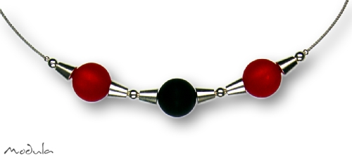 Modula® Collier -5111- rot-schwarz (3 Polarisperlen matt), L: 45 cm Schmuckseil Edelstahl farblos beschichtet, Art.-Nr.: 51114571