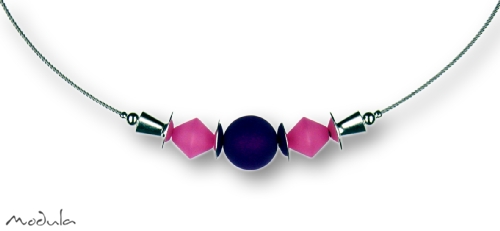 Modula® Collier -5113- pink-lila (2 Polaris-Doppelkegel, 1 Polarisperle matt), L: 45 cm Schmuckseil Edelstahl farblos beschichtet, Art.-Nr.: 51134569