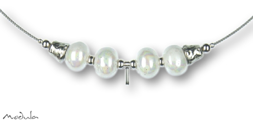 Modula® Halsreif Schmuckseil -109- weiß (4 Keramikperlen), L: 45 cm Edelstahl 1,4 mm farblos beschichtet, Steckverschluss, Clipkarabiner, Art.-Nr.: 201094505